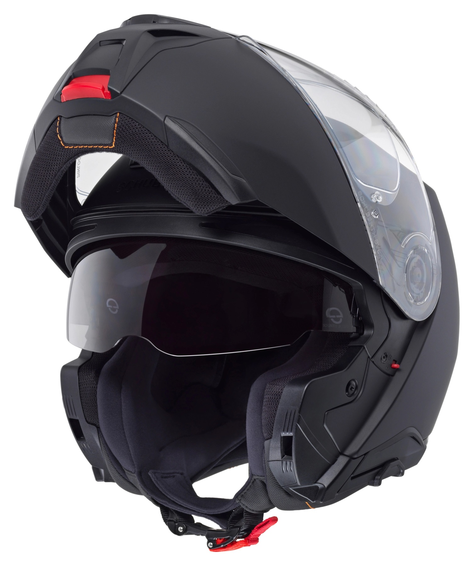 First-class product, good sales strategy – it works! This has been demonstrated by the successful Schuberth *C3 Pro* flip-up helmet in combination with Louis. And it is now being repeated with the Schuberth *CONCEPT*. This is your innovative flip-up motorcycle helmet with a specially designed helmet shell tested in the Schuberth wind tunnel, with ECE 22.06 certification (tested as a jet and full-face helmet), attractive decals and the best comfort. Ideal for touring riders. The Schuberth *CONCEPT* has all the good features that have been incorporated into flip-up helmet production from the *C3 Pro* onwards: impressive safety, amazing aerodynamics, excellent ventilation and a great fit. What's more, the *CONCEPT* pampers with an innovative seamless lining. It is prepared for the use of a universal communication system.